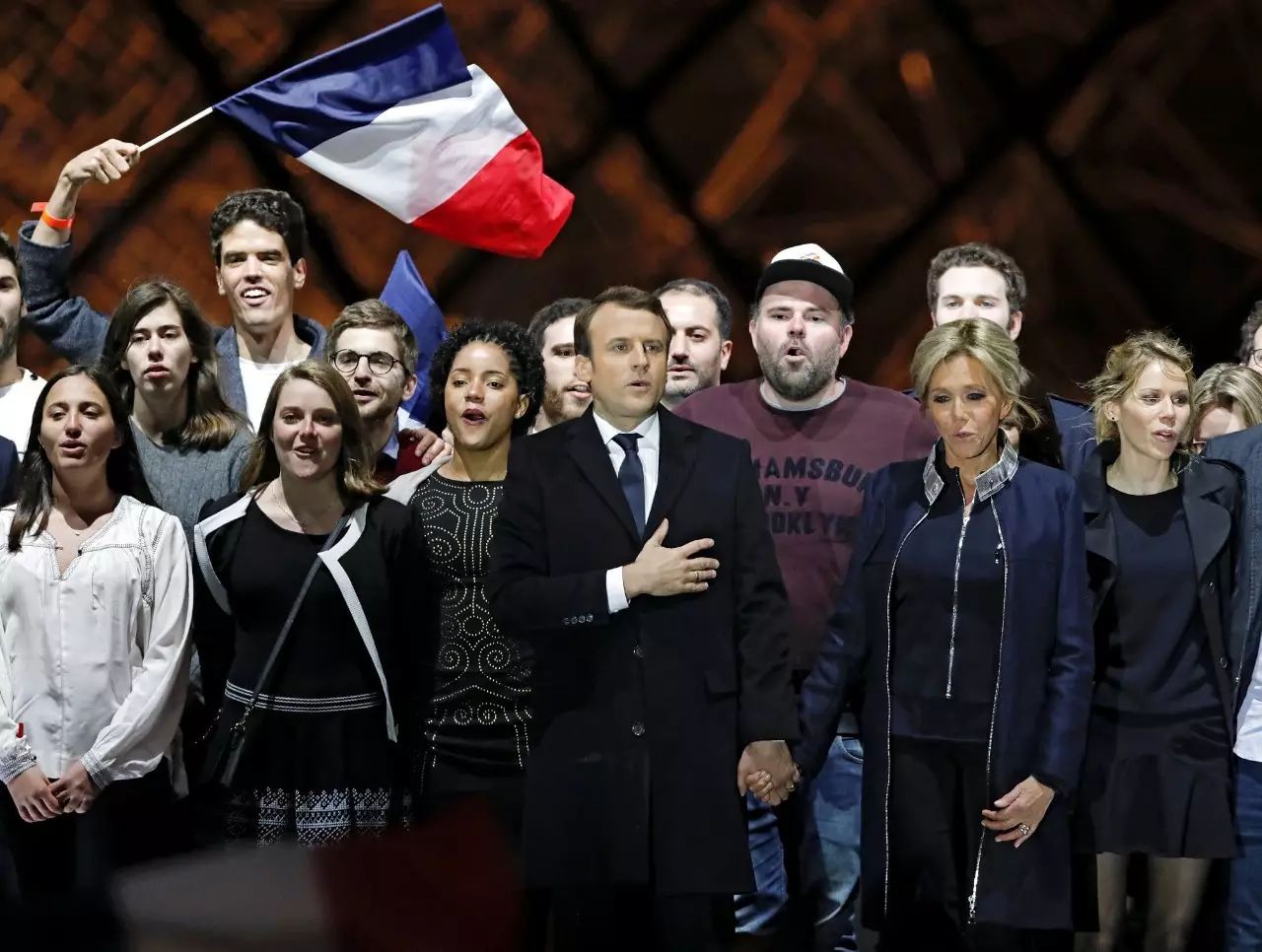 2017年5月7日,马克龙战胜极右翼候选人玛丽娜·勒庞,当选“史上最年轻”的法国总统。