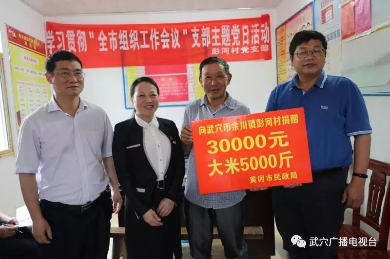 6月9日,黄冈市委常委、市纪委书记王立兵带领黄冈市直相关部门负责人,冒着大雨来到精准扶贫联系点武穴市余川镇彭河村督导检查精准扶贫、美丽乡村建设、防汛备灾等工作。黄冈市委副秘书长白家松参加督导检查,我市市委书记、市人大常委会主任郝胜勇,市委副书记、市长李新桥、市委常委、市纪委书记金晓耕先后陪同。