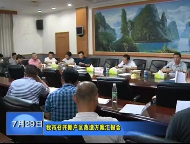 7月29日,我市棚户区改造方案汇报会召开。市领导李新桥、高维鹏、徐平权、郭春桢、夏学明、胡广、董学敏参加会议。