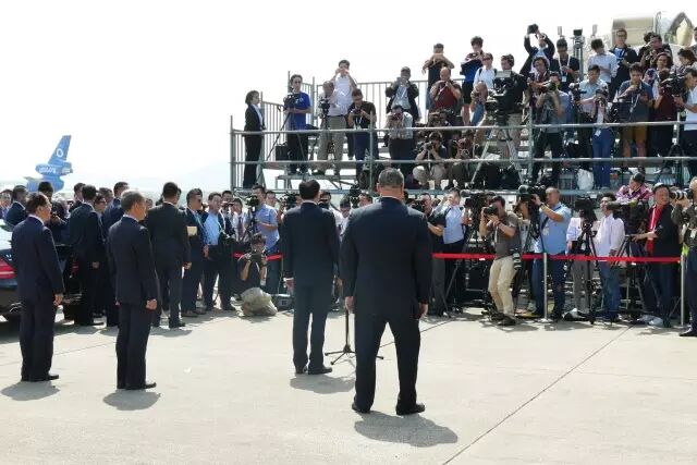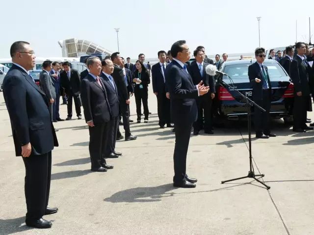 10月10日11时28分,李克强总理踏上了澳门土地,这是他首次视察澳门。澳门特区行政长官崔世安登机迎请总理。机场铺开红地毯,乐队奏响欢迎乐曲,200名澳门儿童手举鲜花、五星红旗和澳门特区区旗,与澳门特区政府主要官员一道,盛迎李克强总理莅临澳门。