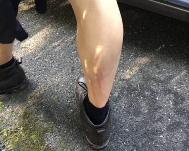 就这样,刘新停半冲带跑地下了坡,一路上小腿被灌木扎开了好几个口子,还被坡上滚落的大石块砸了一下。到了湖边,他衣服还没来得及脱,就下水了。