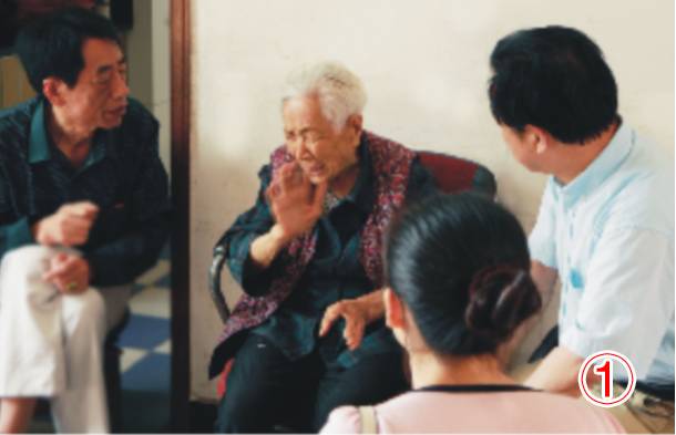 图2:武穴下港张才垸惨案幸存者张增全(左三)诉说当年日军杀害百姓情景