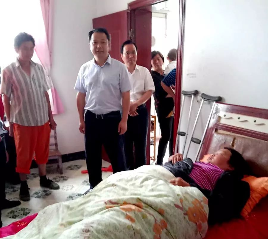 在梅川镇李兴泗村,李新桥实地查看桥头村稻虾养殖基地,亲切看望了李兴泗村部分贫困残障群众,详细了解他们的生产生活情况,鼓励他们要坚强乐观地面对磨难,凭借自己勤劳的双手创造美好生活。