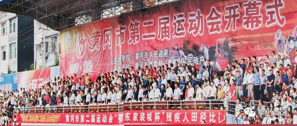 16年前, 2003年9月20日,黄冈市第一届运动会在黄州隆重举行。开幕式上,4500人表演了大型团体操《全民健身大展示》。运动会为期6天,11个县、市、区及市直的15个体育代表团参加比赛。2000多名运动员角逐竞技18个体育项目。国家体育总局派出蔡振华、刘国梁、吕林、乔红、杨影、郭跃华、陈新华等一批乒乓球世界冠军和奥运冠军来黄冈义赛。