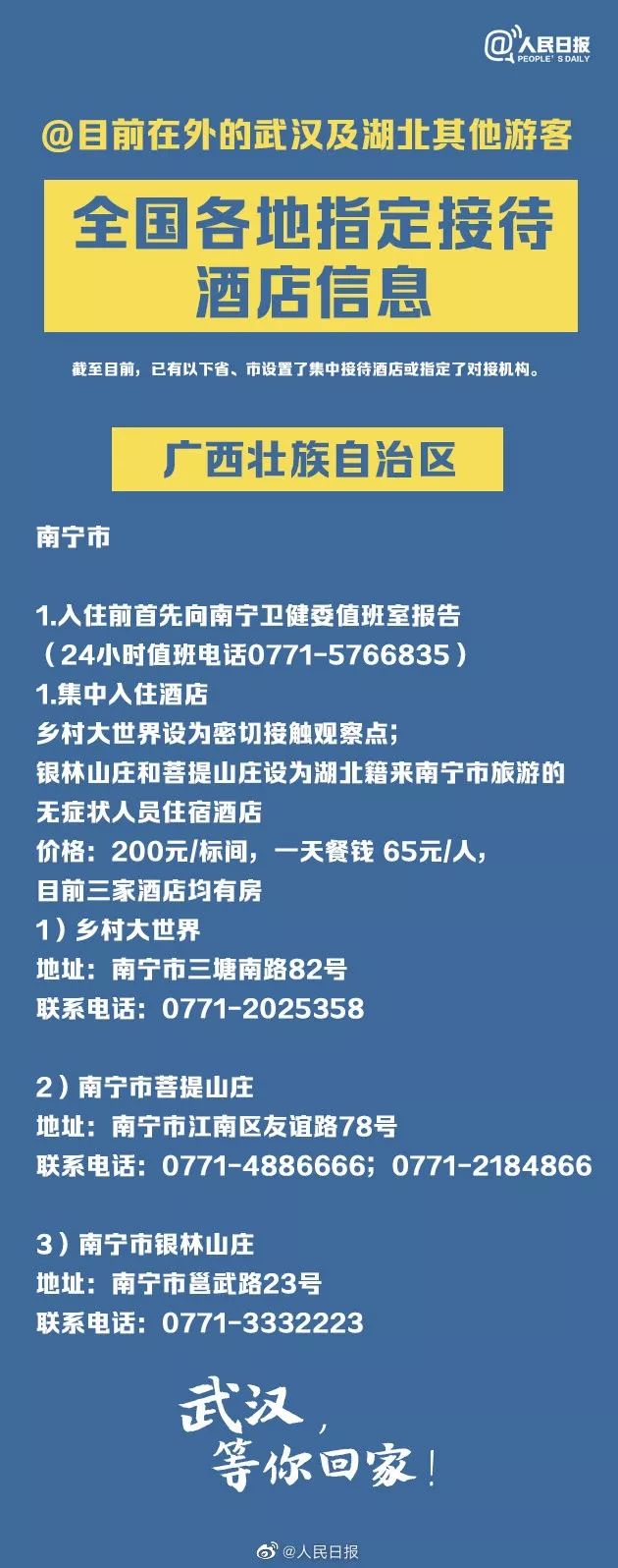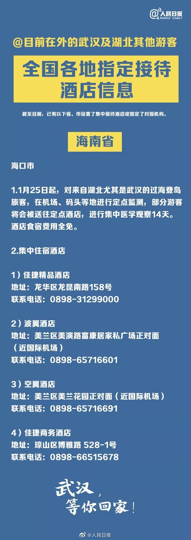 转给湖北同胞!全国指定接待湖北游客酒店信息