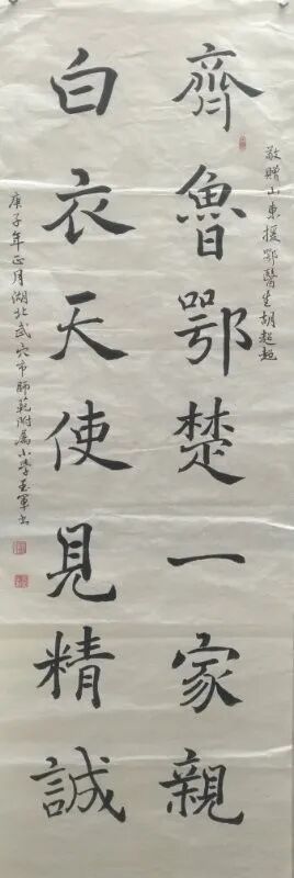 目前,所有书法作品已经进入了装裱阶段。校长涂玉霞说:“铭记齐鲁大爱,感恩山东担当。患难之中见真情,我们共同期待摘下口罩,拥抱美好的那一天!”