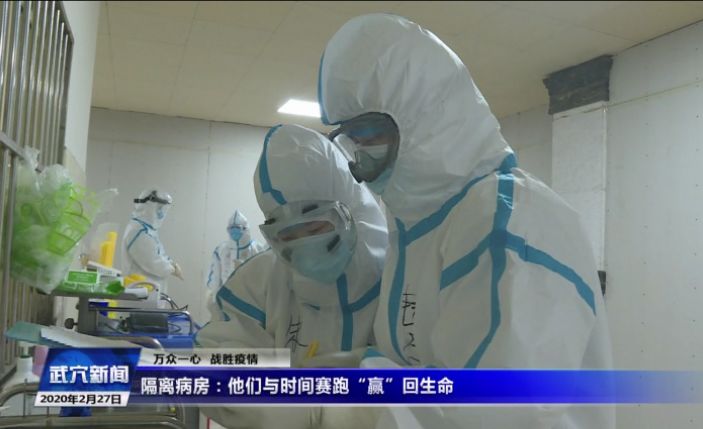 2月26日,在第一人民医院保康院三区,医护人员正在对一名患者进行生命体征检测。据了解,该患者梅某于1月20日,因发烧咳嗽,呼吸困难,手指紫绀,不能平躺,通过核酸检查呈阳性,被确诊为新冠肺炎,送至感染科危重症病房。