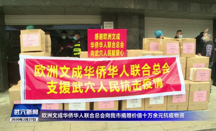 2月27日下午,欧洲文成华侨华人联合总会向我市捐赠价值十万余元的抗疫物资,包括一次性口罩1800只,防护服2000套。市委常委、常务副市长高维鹏代表我市接受捐赠。