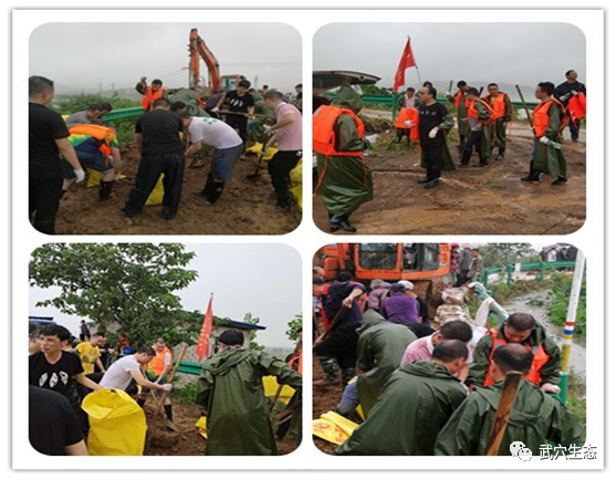自汛期开始,黄冈市生态环境局武穴市分局抽调20多名干部职工,组成了以局党组成员、副局长刘辉俊为队长,副科级干部桂海峰为副队长的抗洪抢险突击队,随时准备奔赴抗洪抢险第一线。