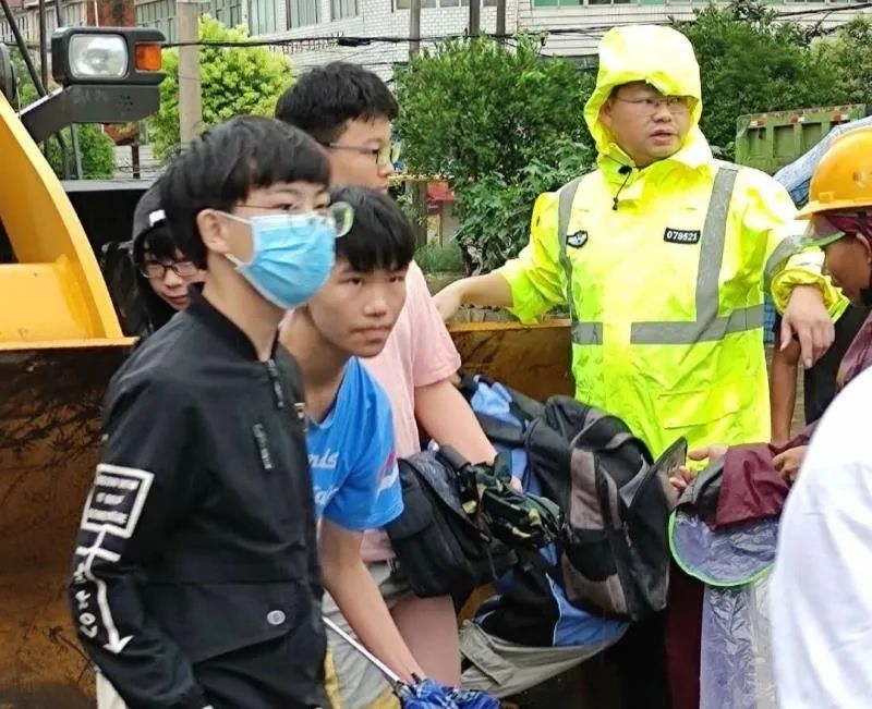 为全程保护学生的安全,学生们站在铲车铲斗里,并且每次由一名民警及一位老师进行运送。在不到半个小时的时间内,田镇中学内57名师生全部成功转移疏散。