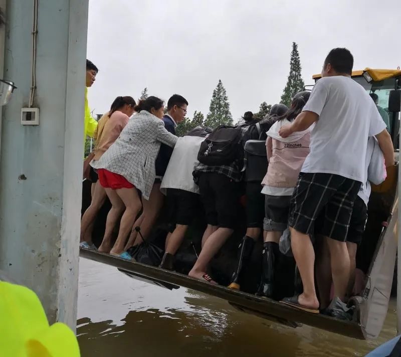 当民警赶到现场时,学校办公楼、教学楼、宿舍楼一楼全部被淹,最深处已经有一米多深,校外路面水淹距离非常远,最近距离都有600多米,大雨没有停歇的意思,眼看校园内水位越来越高,学生们的心情非常着急。关键时刻,联防联控成员单位富强码头组织三台铲车前来参与施救。