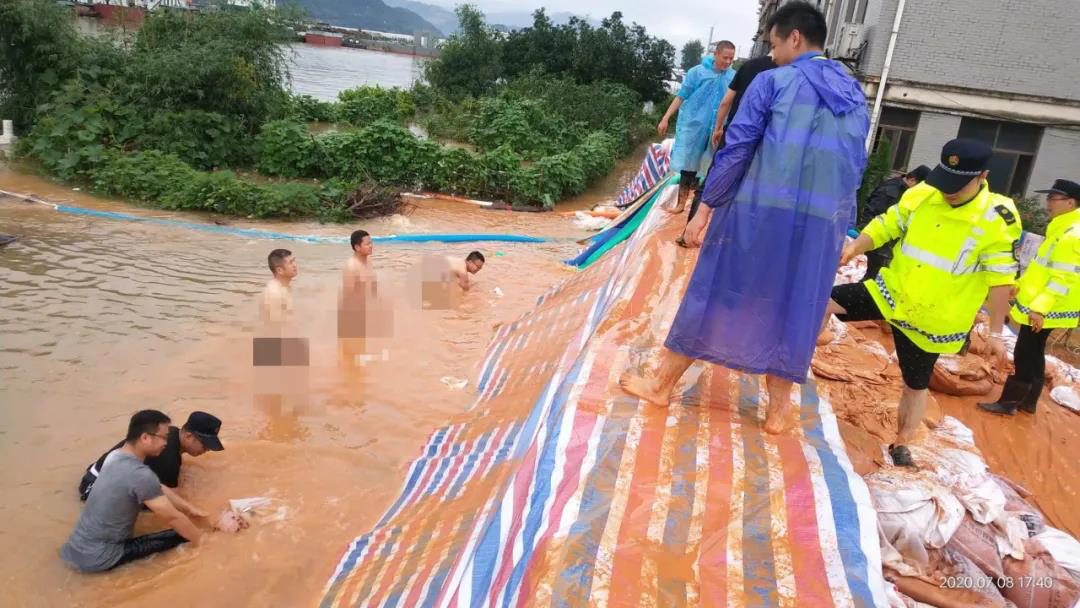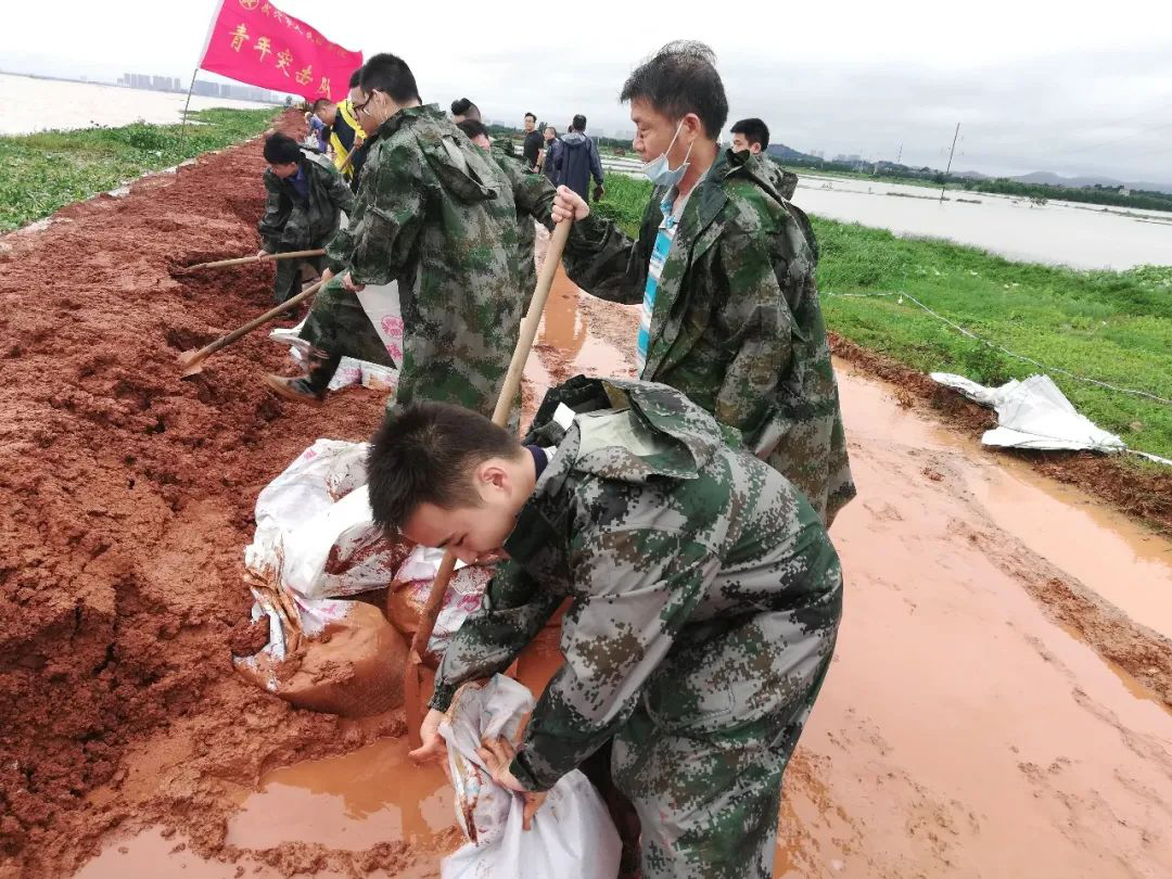 7月8日,黄冈市生态环境局武穴市分局抽调20多名干部职工组成突击队,紧急奔赴田镇马口东湖抗洪抢险第一线。队员无脚踩淤泥,头顶大雨,挥铲弄锹,迅速投入到铲土、堆沙袋、运沙袋等工作中,与洪水抢时间抢进度。