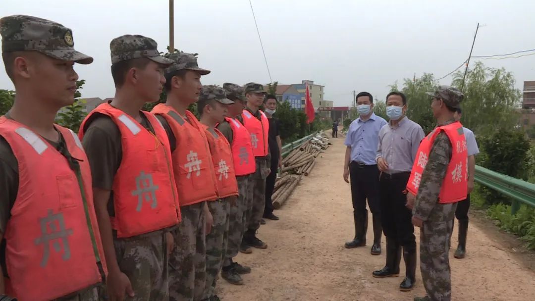 连日来的强降雨,武穴江河湖库水位急剧上涨,花桥镇荆竹河郑公塔地段于7月8日9时突发40米的溃口,中部战区某舟桥旅300余官兵紧急驰援抢险和封堵,预计9日晚可以完成整体封堵任务。刘雪荣来到现场,对参与抢险的官兵表示慰问,希望官兵们发扬军队优良传统,持续保持旺盛斗志,不辱使命,保证完成任务。并叮嘱地方党委政府做好防暑降温、防疫等工作,加强部队官兵后勤保障。