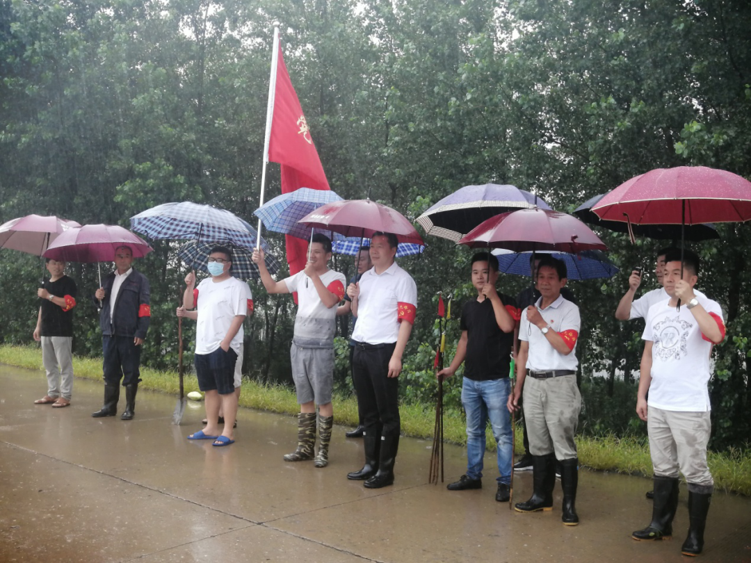 田镇办事处郭冲社区负责防守黄广大堤近700米的堤段,任务艰巨,责任重大。7月5日长江水位达到设防线,郭冲社区第一时间在大堤上设立两个哨棚,按照人员、设施、物资装备、制度、后勤保障、垃圾处理“六个到位”要求,第一批13名由党员带头成立防汛队伍立即上堤值守,按照相关要求开展巡堤查险工作。7月7日上午长江水位达到警戒水位,社区党员纷纷主动报名要求上堤,34名防汛队伍迅速到位,立即落实防汛各项工作要求。