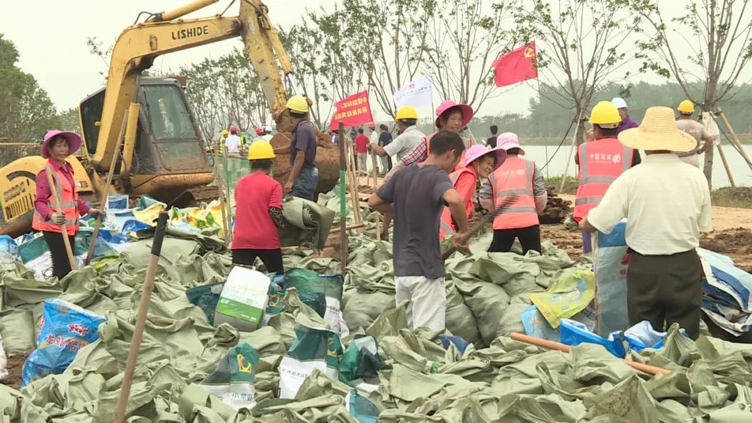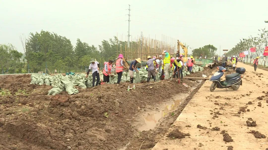 抢险现场人头攒动、机器轰鸣,挖掘机、推土机秩序井然地来回作业,施工人员装沙袋,铲泥土,扛沙包,砌围堰,经过4个小时奋战,下滑土堤被整整齐齐的沙袋垒得严严实实。
