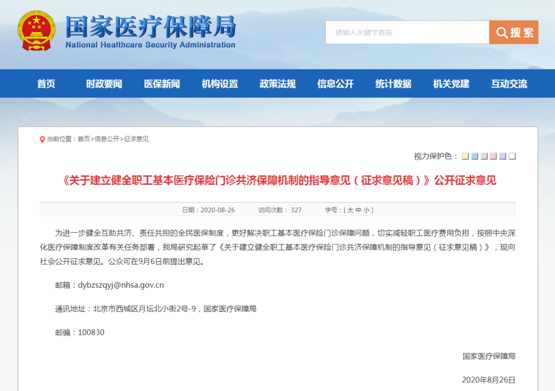 8月26日,国家医保局正式向社会公布《关于建立健全职工基本医疗保险门诊共济保障机制的指导意见(征求意见稿)》。意见拟规定普通门诊费用医保可以报销,报销比例从50%起步。同时,职工医保个人账户计入办法也将有变,医保单位缴费部分不再计入个人账户,全部计入统筹基金。