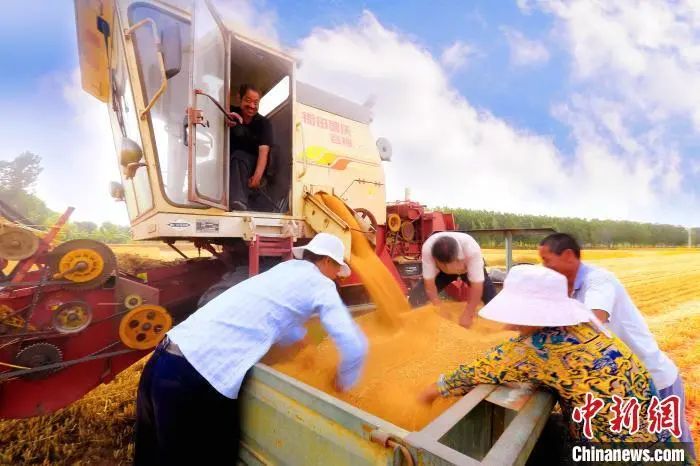 资料图:山东夏粮主产区临沂郯城县收割现场。农发行山东省分行 供图