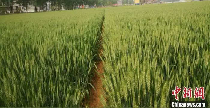 甘肃省科学院纳米研究团队在河南、新疆和甘肃试种的大面积纳米冬小麦和纳米春小麦提质增产。图为河南襄城县冬小麦对比照片(右侧为纳米小麦)。甘肃省科学院纳米室供图