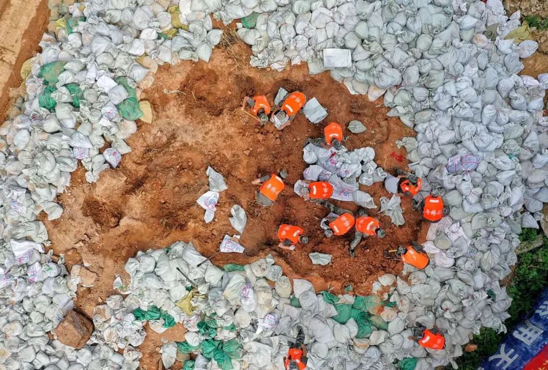 7月17日,蕲春县长江回水堤防赤东支堤桩号 5+900 处,距内堤脚 60 米的水塘中发生管涌险情,蕲春县防指迅速抽调 400名应急抢险突击队支援,就近调动待命的挖机、铲车、运输车运送砂石料,并从赤东镇紧急调集附近 15 个村近3000 名群众参加抢险,通过 4 天不间断向管涌处抛投袋装砂石料,险情成功处置。