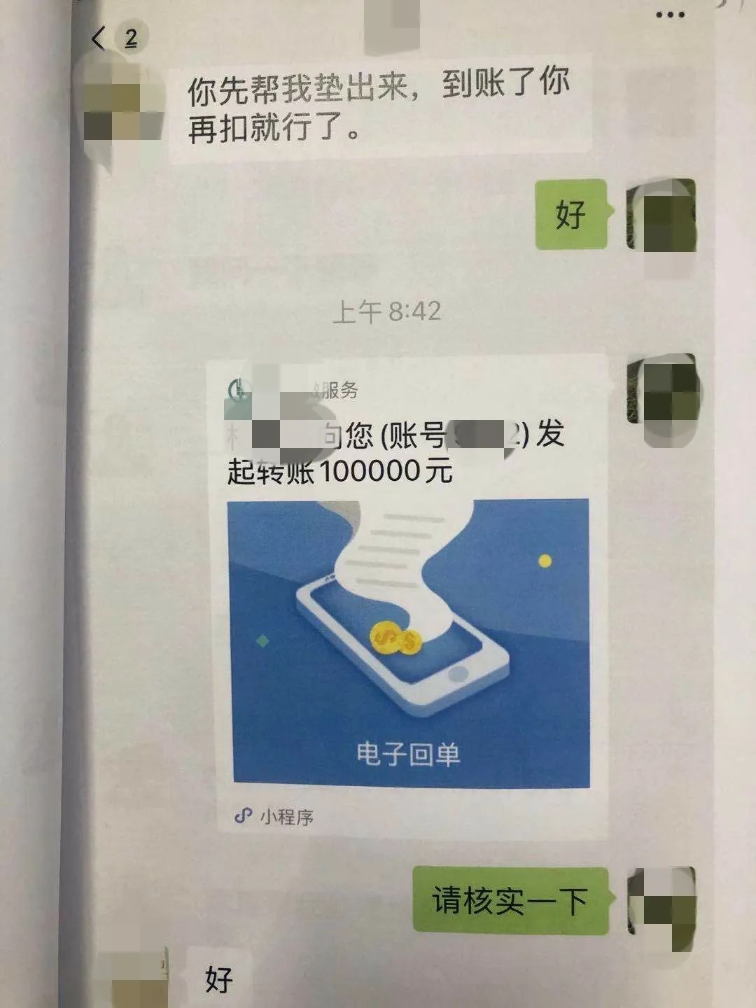 刚转完账,“领导”又发了一张转账10万元的微信截图给老桂,让他再转10万给另外一个人。由于一直没有收到之前10万元的到账信息,这时老桂才感觉自己上当受骗了。