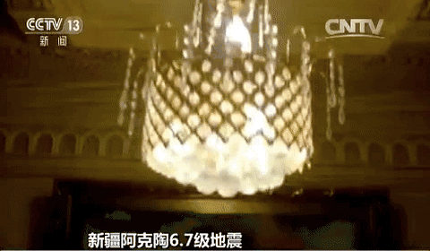 △居民家中的吊灯出现剧烈摆动。从摆动的幅度来看,不难想象地震发生时的强度。