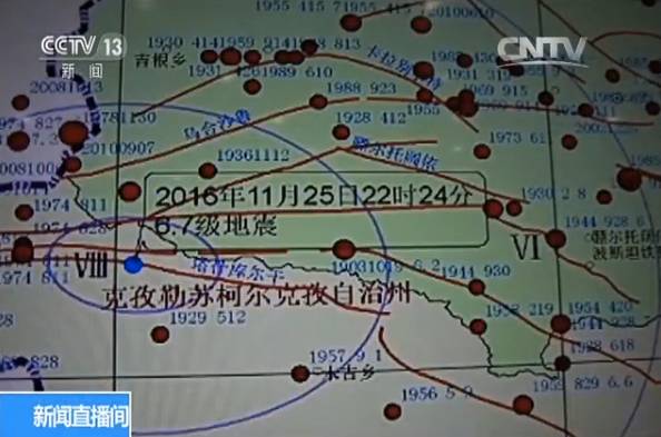 11月25日22时24分,中国地震台网正式测定:新疆克孜勒苏柯尔克孜自治州阿克陶县(北纬39.27度,东经74.04度)发生6.7级地震,震源深度10千米。地震导致一人遇难,部分房屋和羊圈倒塌。