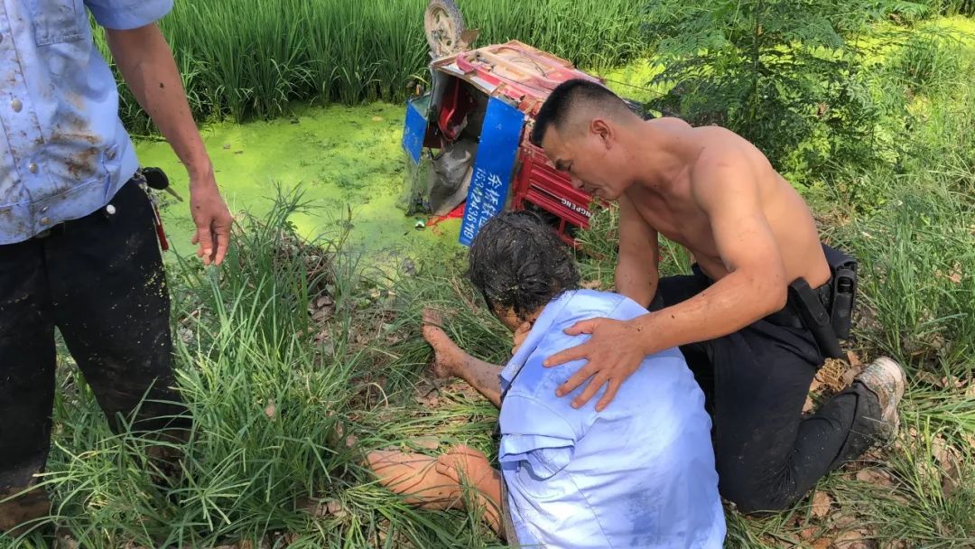 8月18日,邢焰娥驾驶电动三轮车,载着媳妇以及孙子孙女外出,行驶至万丈湖伊利奶牛场附近路段时,因操作不当,一家四口连人带车翻入路边的水渠中。媳妇及小孩三人受伤,邢女士被三轮车压在水下,人事不知,无法动弹,情况危急。
