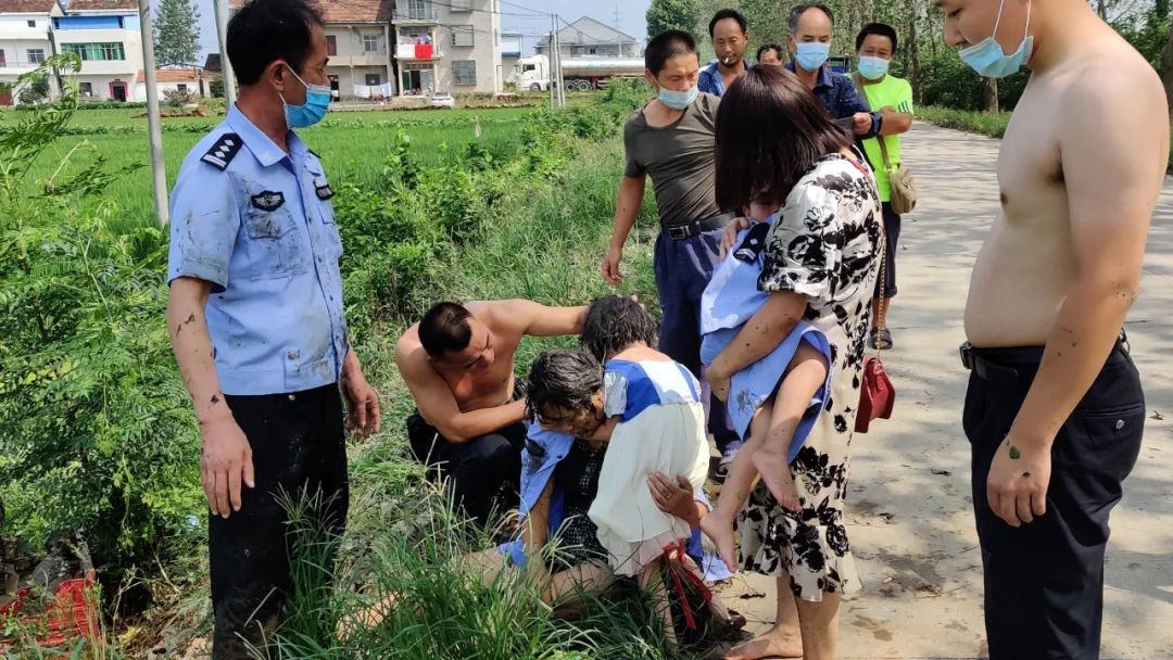 据胡楚烈回忆,他们跳下水后,先后将四人救上岸边,当时,邢焰娥的口唇已变色,呼吸微弱。凭借经验,大家帮她抠出呛入口鼻中的淤泥杂物,辅警王正兴跪在地上为她做心肺复苏,抢救了近两三分钟,邢焰娥终于有了知觉。随后,民警们脱下衣服为小孩子和邢焰娥披上,等待救护车的到来,经医护人员检查,落水四人因施救及时,均无大碍。