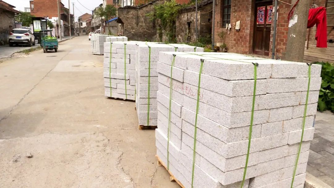 这条金会元故居前的老街美化工程长约360米 宽约6米准备铺设大理石石板材料 人工全部到位预计10月底能全部完工