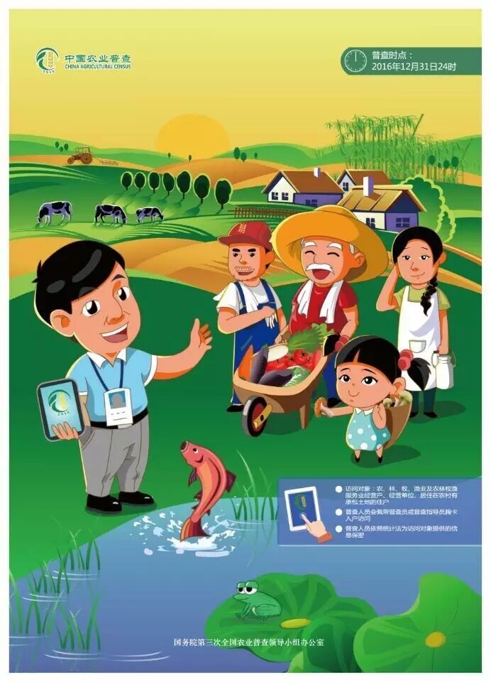 根据《全国农业普查条例》的规定,农村住户、农业生产经营户、农业生产经营单位、村民委员会和乡镇人民政府是第三次全国农业普查对象。此次农业普查的标准时点是2016年12月31日,普查时期为2016年1月1日—12月31日。从2017年1月1日起,普查人员将佩戴统一的普查员证,使用手持电子采集设备(PDA),对所有普查对象进行入户登记。请您提前整理好户籍簿、土地确权证、土地承包证、林权证、统一社会信用代码证、土地流转合同等相关证件,认真回忆2016年全家(单位)生产生活情况,了解家庭外出人员情况,做好普查登记准备。