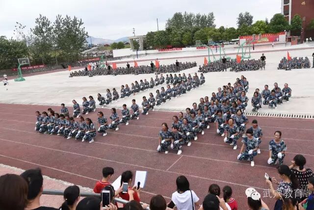 在随后的汇报表演中,同学们共同展示了列队动作、军体拳、手语操《感恩的心》和创新方队表演。在创新方队方队表演中一百名学生排列成“TYGZ”“NO.1”等队形,高呼“天有学子,为校争光”“天有学子,自强不息”等口号,令现场观众震撼。