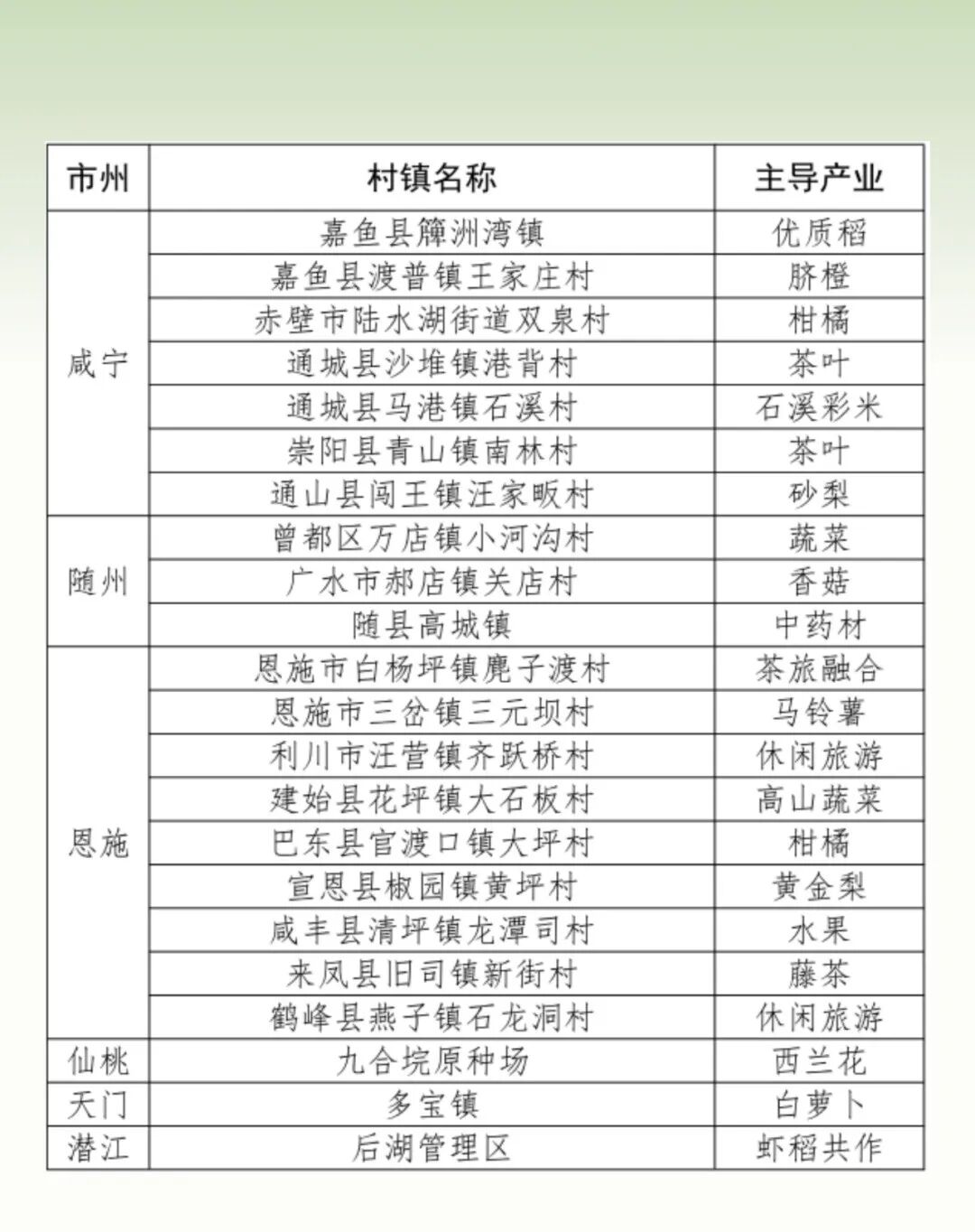 近日湖北省农业农村厅办公室发出关于公布湖北省第一批省级一村一品示范村镇名单的通知认定全省100个村镇为湖北省第一批一村一品示范村镇
