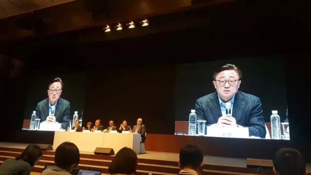 ↑发布会现场,三星电子无线事业部总裁高东真介绍Note7燃损事件调查结果