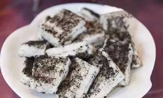雪花粑是专属于英山的一种特殊美食,选黑芝麻炒脆炒香炒熟,捣碎后加糖制成馅料。将糯米粉、粘米粉按混合上蒸笼摊散摊平,同时在米粉的上层铺上一层芝麻馅料,如此反复重叠三层大火蒸制。刚出锅的雪花粑柔韧松软,口感绵密,多嚼几口还会变得富有弹性。馅料的加入让雪花粑又增添了几丝醇香与甜蜜,吃起来欲罢不能。