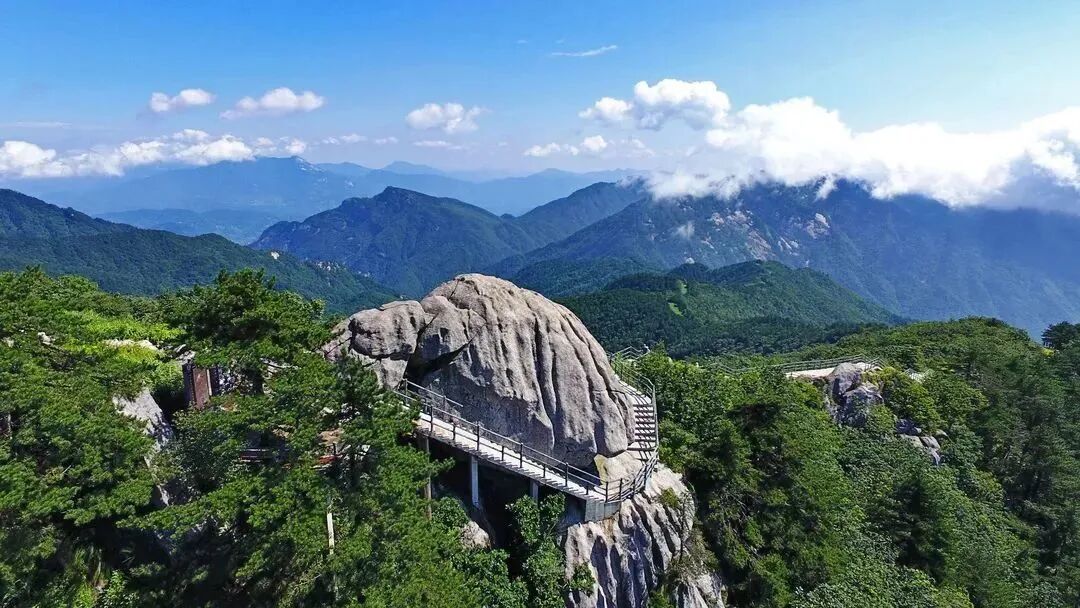中原第一山——大别山主峰天堂寨,一柱擎天,雄奇险峻,巍峨隽秀。襟掖湖北、安徽两省三县,俯瞰河南。临顶,层峦逶迤,气势磅礴,江淮美景尽收眼底。站在海拔1700多米的山巅,近可观荆楚山河璀璨,远可眺望安徽省群山风貌。山中多云雾,常可见云海奇观,步行其间,恍若行走云端,身心皆清凉!