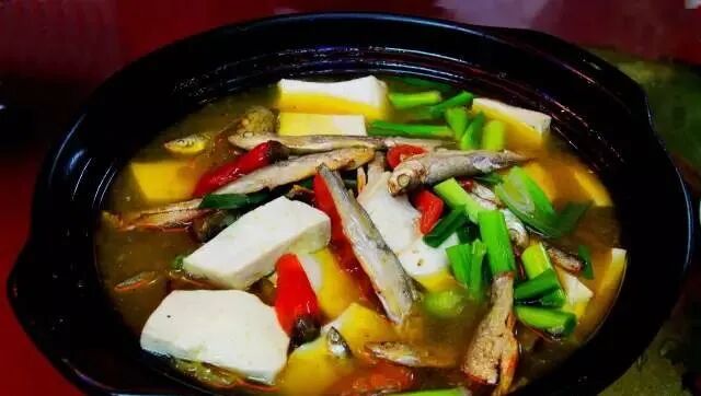 椒是高山腌制的红灯笼椒,鱼是山泉溪流小河鱼,豆腐是柴火老豆腐,都是普通农家最为常见的食材,却是城里人难得的山珍之味。聪明的英山人将这三者合在一起,创造了腌椒河鱼煎豆腐锅。直到今日,英山人依旧对其热情不减。