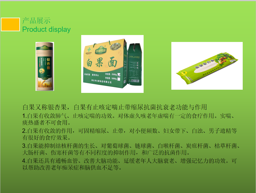 俗称银杏面:湖北省黄冈市英山县特产,黄冈地标优品企业——湖北幸生康食品有限公司。银杏,又名白果,味道鲜美,柔韧滑腻,较之莲子,更胜一筹,是现存种子植物中最古老的孑遗植物。银杏在宋代被列为皇家贡品,具有一定的药用价值,用其制成的面条久煮不糊,筋道好吃,老少皆宜。