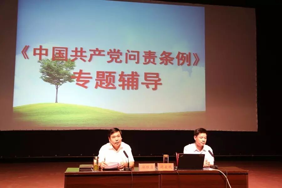 辅导会上,胡爱民主任从《中国共产党问责条例》的出台背景、新精神新要求、与有关法规的衔接、具体运用及实行建议五个方面,对《中国共产党问责条例》进行了分析和解读,为我们今后进一步准确把握《中国共产党问责条例》的内涵、增强遵守《中国共产党问责条例》的自觉性,必将起到很好的启示作用。