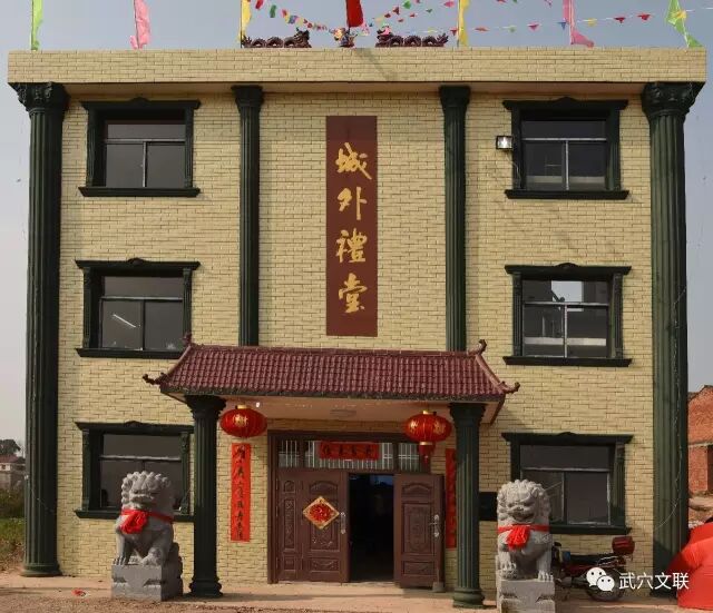 为了解决村民文化活动无场地的问题,胡巨成捐款15万元,和乡亲们一道集资修建了城外礼堂。城外礼堂不仅是城外垸特色鲜明的新地标、展示垸容垸貌的新平台,还将是城外垸集学习、教育、活动于一体的群众活动中心,更是村民追梦寻根的文化殿堂和精神家园。