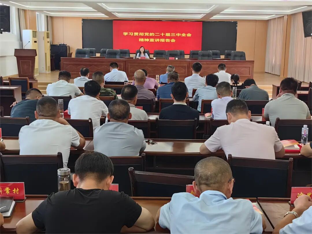 8月22日,市委常委、组织部部长董晓燕到花桥镇宣讲党的二十届三中全会精神。花桥镇全体国家干部,各村(社区)、镇直机关单位、“两新”组织党组织书记参加报告会。