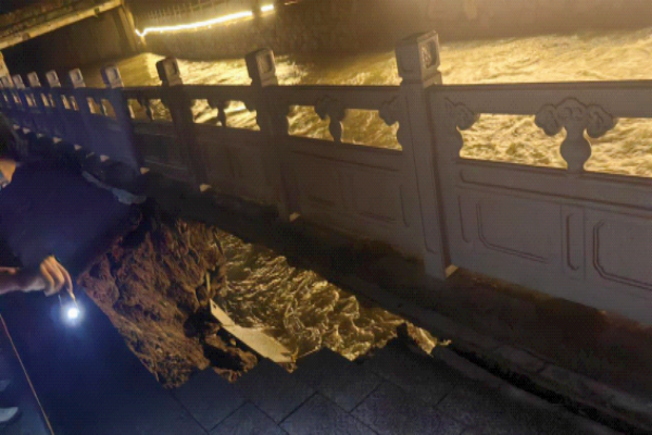 6月25日23时,黄冈市武穴市梅川镇党委副书记、镇长吴通带领灾害风险隐患信息报送员汪胜华巡查时,发现梅川河水流湍急、水位急涨,石牛二医院段河坝出现渗水塌方迹象,一处步道下方已完全洗空。现场核查后,又发现三处塌方,塌方路段总长35米,涉险路段为重要景观步道,日常通行人员众多,考虑到后续仍有持续强降雨,如不及时处置,可能决口,于是立即上报。吴通立即安排人员对危险区上下游景观步道采取拉警示带和树警示牌的方式进行物理隔离,在入口处24小时值守防止人员靠近。还利用梅川观察视频号、党员干部朋友圈等发布梅川河登高山桥至民康桥健康步道临时关闭的通知,同时全方位告知临近社区网格辖区内居民。市应急管理局接报后,召集相关部门与专家研究应急处置方案,迅速调度突击队员、物资、机械、材料等,做好天亮战斗的应急准备。同时,安排人员彻夜沿河巡查排查。梅川镇相关人员、物资、车辆、设备提前进场就位。26日5时20分,应急突击队员分组行动,分别负责取土装沙袋、打桩固基、装沙等工作。12时30分,完成处置。此次避险处置共调集200余人次、重型车12台、钩机2台、叉车4台、编织袋10600余条、块石料70余吨、土包40余吨。保护了一所二级乙等综合性医院、一所中学(2000余学生)、8000余居民的安全,避免了沿河5千余亩农田水毁损失。