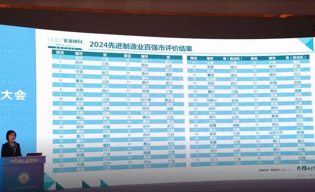 12月25日,2024先进制造业发展大会在荆州举行,赛迪顾问发布《2024先进制造业城市研究报告》,荆州连续两年跻身“全国先进制造业百强市”并争先进位,位列第87名。
