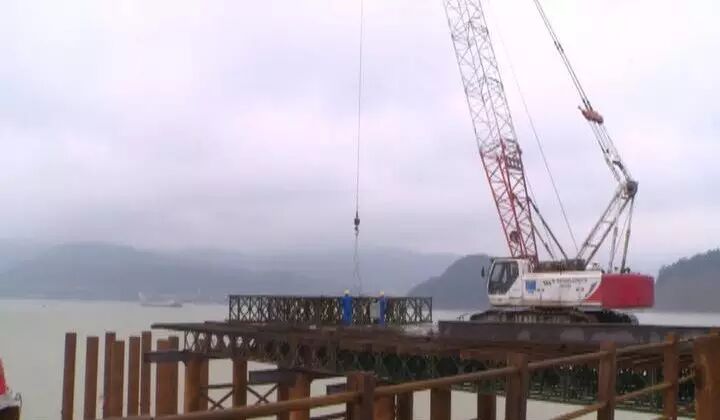 自9月28日,主桥试桩工程开始施工以来,历经半年桥体已初具雏形。目前,施工栈桥已建成438米,为确保主桥墩的钢围堰于2月20日前下水浮运至主桥墩位置。记者从大桥项目指挥部了解到,为了全力保障大桥建设进度,不少工人师傅放弃春节与家人团聚的机会,全力奋战在施工现场。