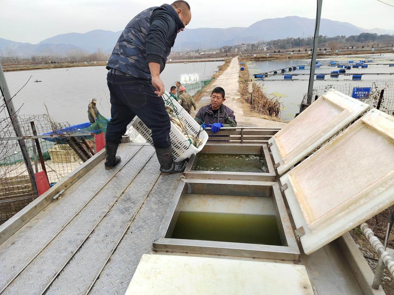 拉网、赶鱼、收网、过磅……近日,湖北黄石阳新陶港镇官塘村长乐泉井生态农业养殖基地内,一派人欢鱼跃的丰收景象。渔工们忙碌地将一筐筐活蹦乱跳的鳜鱼装上前来收购的卡车,准备将此次的1万多斤鳜鱼运往江苏常州水产市场。
