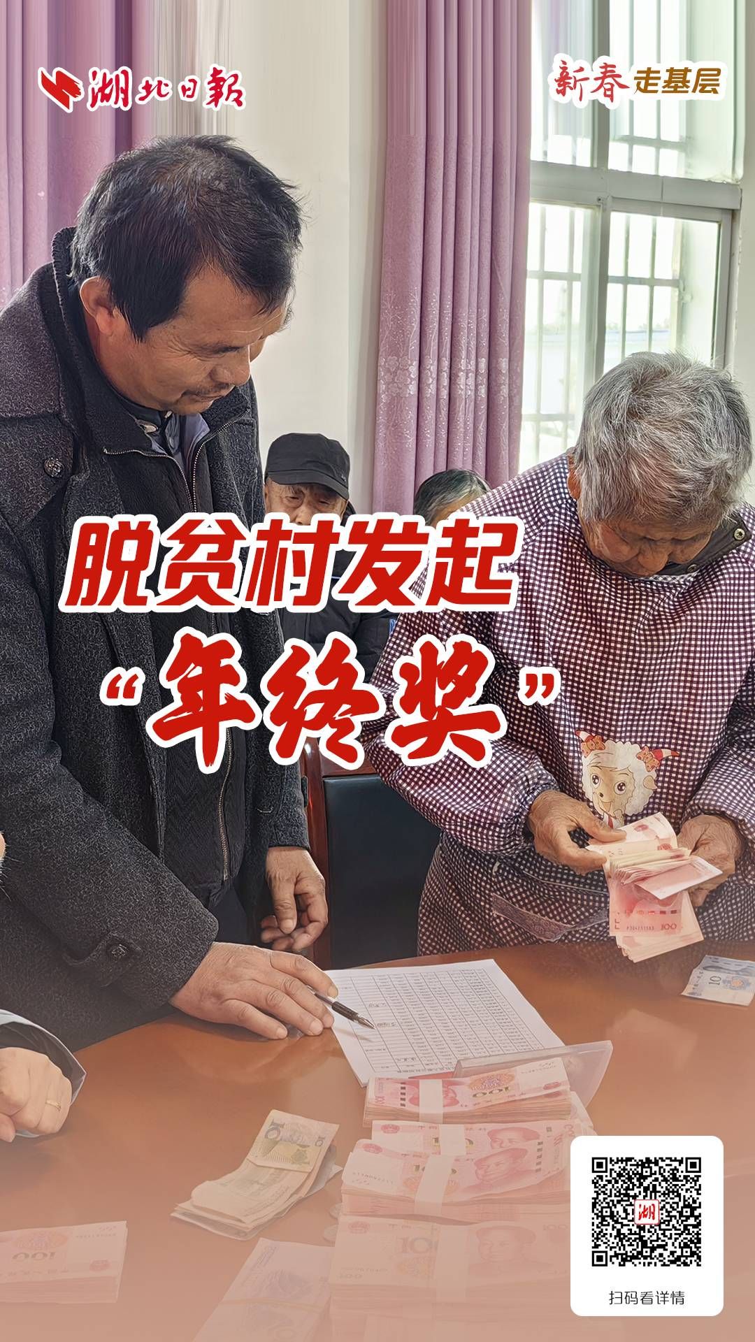 台上,成捆儿的现金码在桌子上;台下,百余村民喜上眉梢,翘首以待。