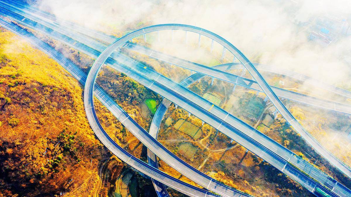 大别山“云端高速”如玉带。(视界网 赵广亮 摄)
