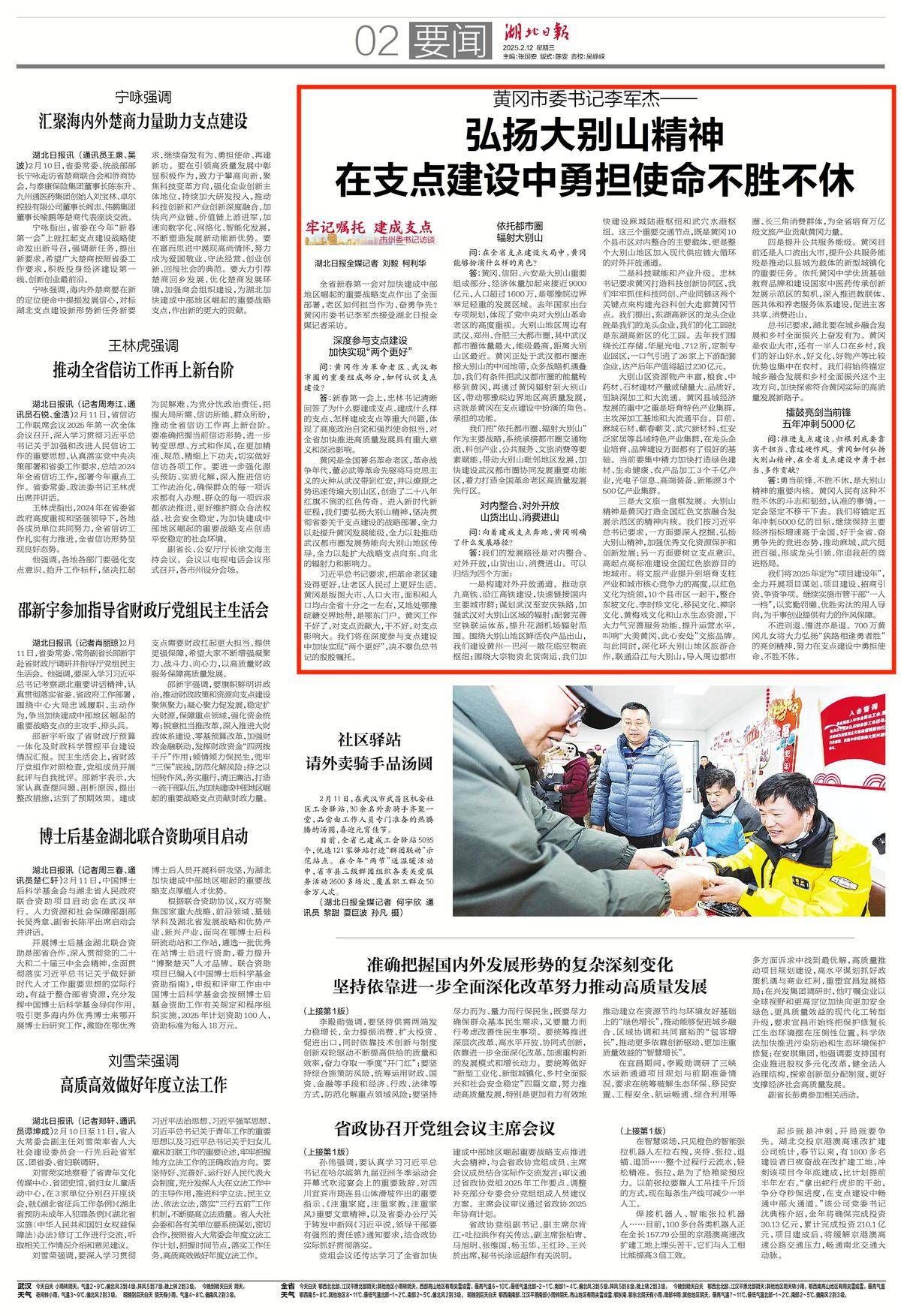 全省新春第一会对加快建成中部地区崛起的重要战略支点作出了全面部署,老区如何担当作为、奋勇争先?黄冈市委书记李军杰接受湖北日报全媒记者采访。