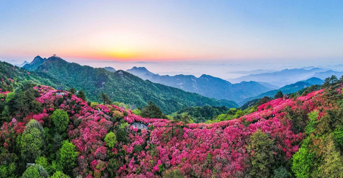 麻城十万亩杜鹃花海。(湖北日报全媒记者 薛婷 通讯员 肖杰 陈攀 摄)