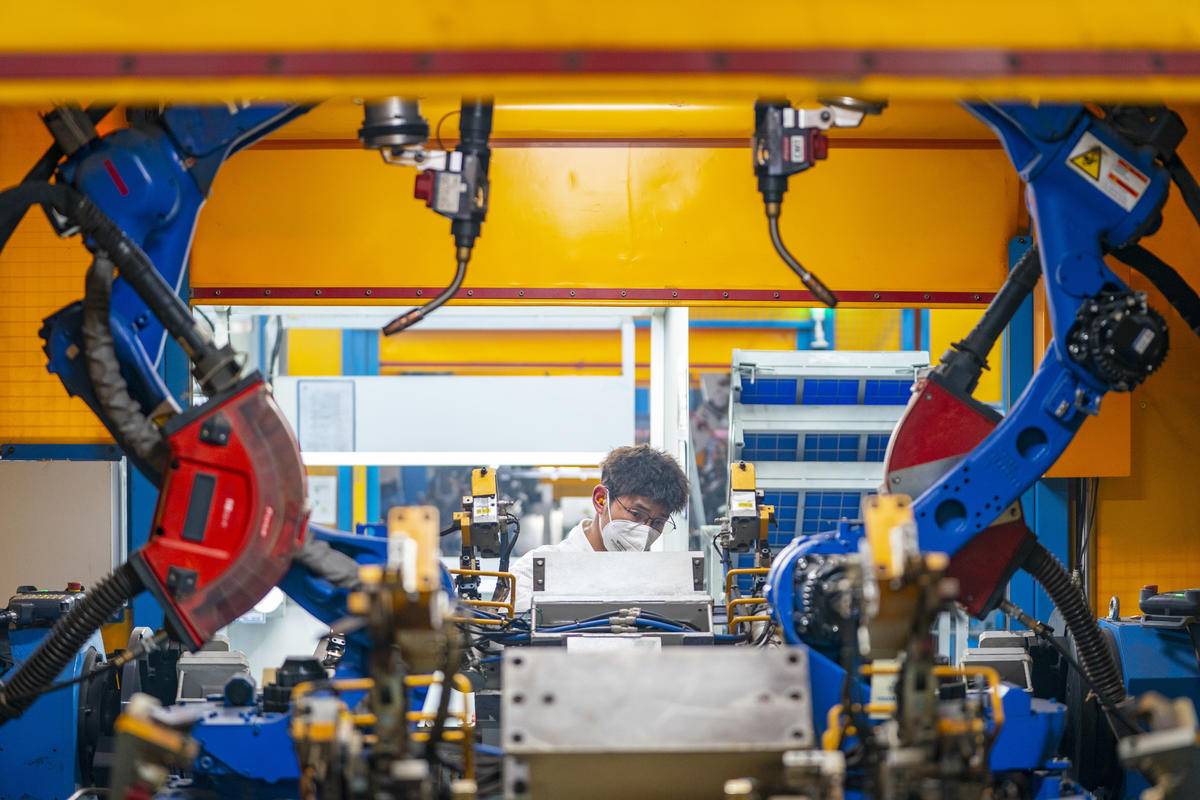 图为位于咸安经济开发区的湖北敏实汽车零部件有限公司车间,生产线上机器人飞舞、工人忙碌。(湖北日报全媒记者 魏铼 摄)