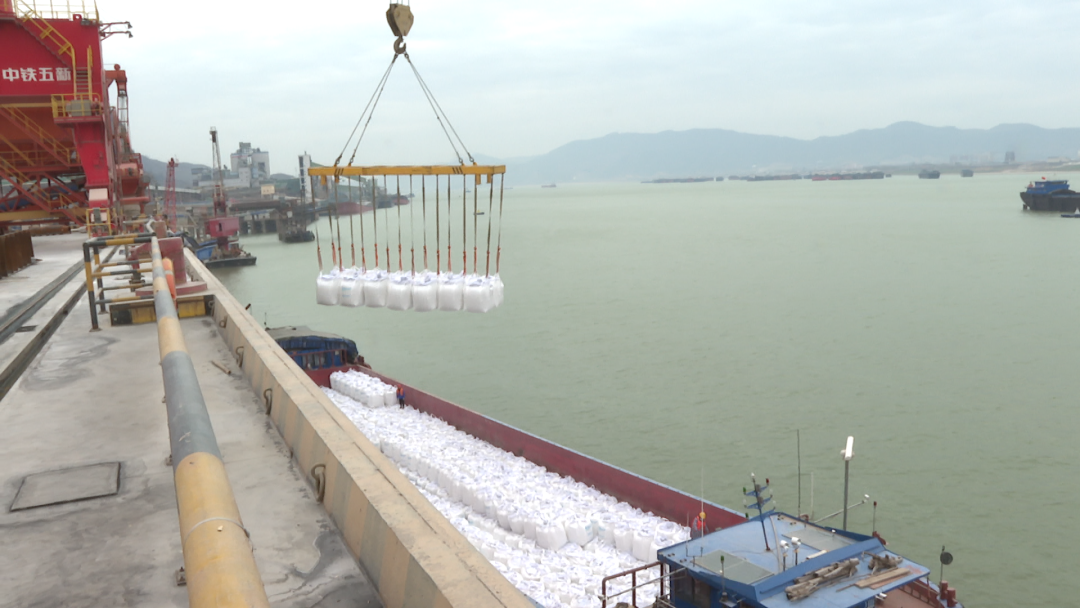 近日,记者在湖北祥云(集团)化工股份有限公司高桩码头上看到,吊装工人们正在3000吨级的货船上装载化肥,一包包化肥将通过水路运输到全国各地。